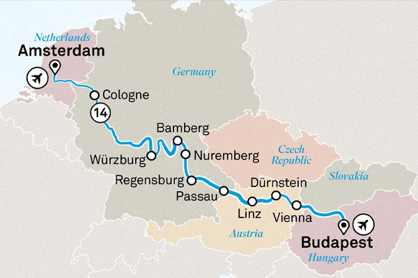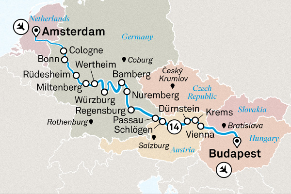 A region steeped in the history of ancient trade routes, today the rivers of the Rhine, Main and Danube meander through forested hillsides, idyllic vineyards and romantic towns. Cruise the canals of Amsterdam, cruise through the magnificent Rhine Gorge, walk the WWII sites of Nuremberg and taste your way around Budapest.