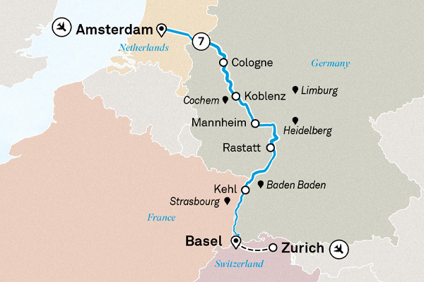 Over just eight days, you’ll go deep into the heart of Europe, discovering its most striking landscapes, storied castles, historic sites and colourful characters. Explore bustling cities and tiny medieval outposts, gaining insight into the way the continent has changed over the centuries. Visit wineries in Alsace and Bad Dürkheim.