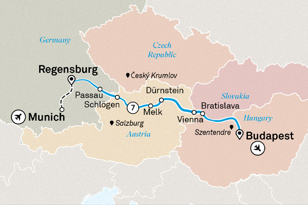 This Danube cruise immerses you in the proud traditions and diverse cultures that span its length. Cruising east from the ancient city of Regensburg, you’ll travel through four countries and experience moments of wonder with Scenic’s signature Nth Degree service. Palaces, monasteries, museums and cathedrals await.