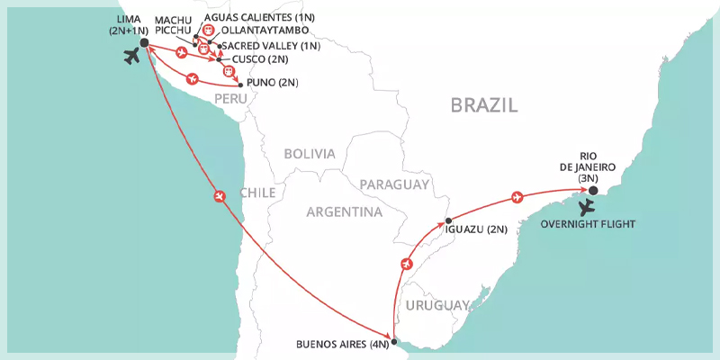 This tour of South America will take you on an unforgettable journey through the highlights of this fantastic continent. Embark on the journey of a lifetime, visiting Machu Picchu, the Sacred Valley, Buenos Aires, Iguazu Falls, Rio de Janeiro and more.