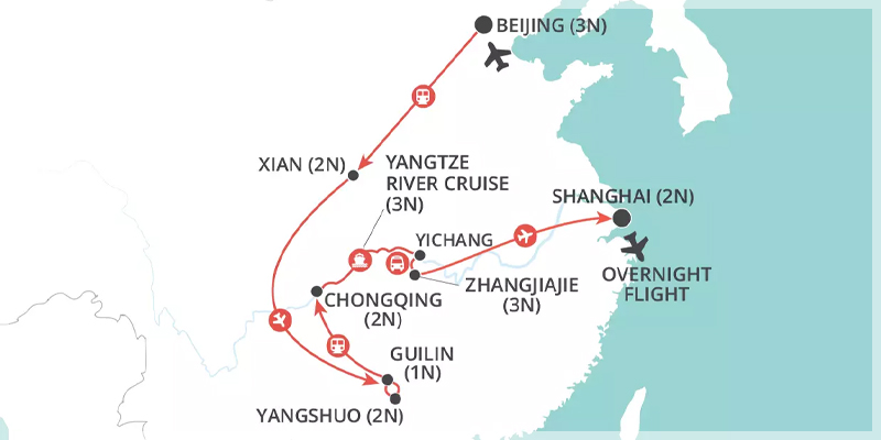 Uncover the best of China, from Beijing’s Great Wall and Forbidden City to Xian’s bustling Muslim Quarter and dumpling feasts. Drift along Guilin and Yangshuo’s iconic Li River, explore the futuristic “cyberpunk” city of Chongqing and meet giant pandas, cruise the dramatic Three Gorges, marvel at the towering sandstone pillars of Zhangjiajie, and finish in the dazzling modern city of Shanghai. This is China at its most iconic and breathtaking.