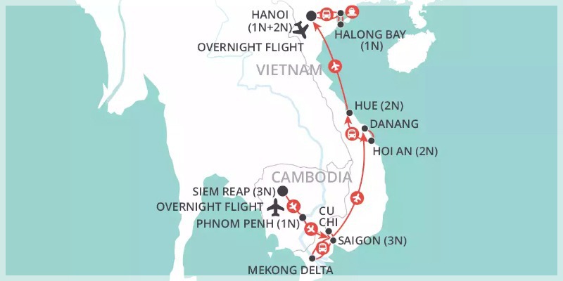 One of the most popular tours, which takes you on a voyage of discovery, from the breathtaking majesty of the temples of Angkor, through to the spectacular natural grandeur of Halong Bay, experiencing all manner of delights en route.