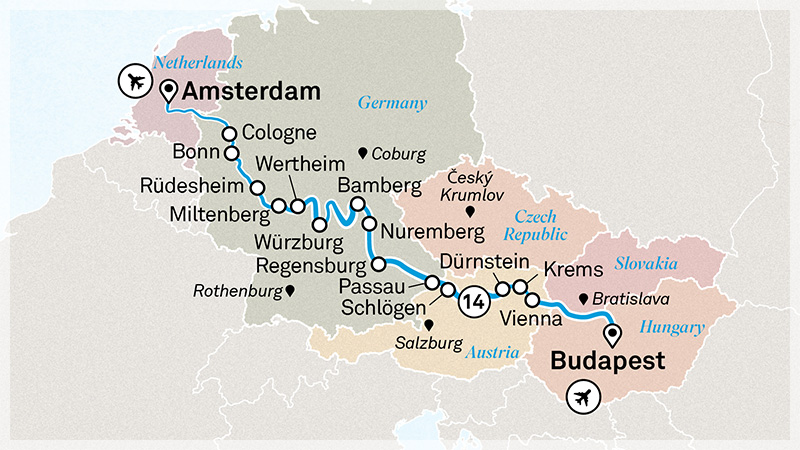 A region steeped in the history of ancient trade routes, today the rivers of the Rhine, Main and Danube meander through forested hillsides, idyllic vineyards and romantic towns. Cruise the canals of Amsterdam, cruise through the magnificent Rhine Gorge, walk the WWII sites of Nuremberg and taste your way around Budapest’s famed Central Market.