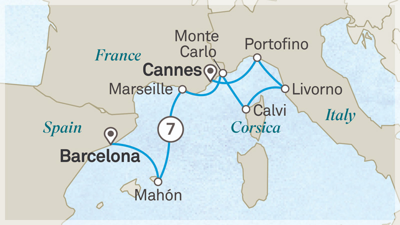 Departing from Nice for an unforgettable Signature Yacht Cruise, where you’ll make your way along the Italian Riviera, calling at picture-perfect Portofino and cosmopolitan Livorno. Then sail across the Mediterranean, visiting the glamorous enclave of Calvi on Corsica, the vibrant cities of Marseille and Cannes, and the beautiful island of Menorca.