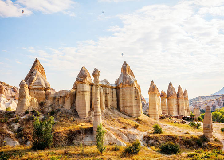 Cappadocia is renowned for its unique landscape of fairy chimneys, rock formations and cave dwellings. Formed by volcanic eruptions millions of years ago, the region's soft tuff rock has been shaped by erosion into stunning formations. Ancient civilisations carved homes, churches and entire underground cities into the rock, creating a rich historical tapestry.
